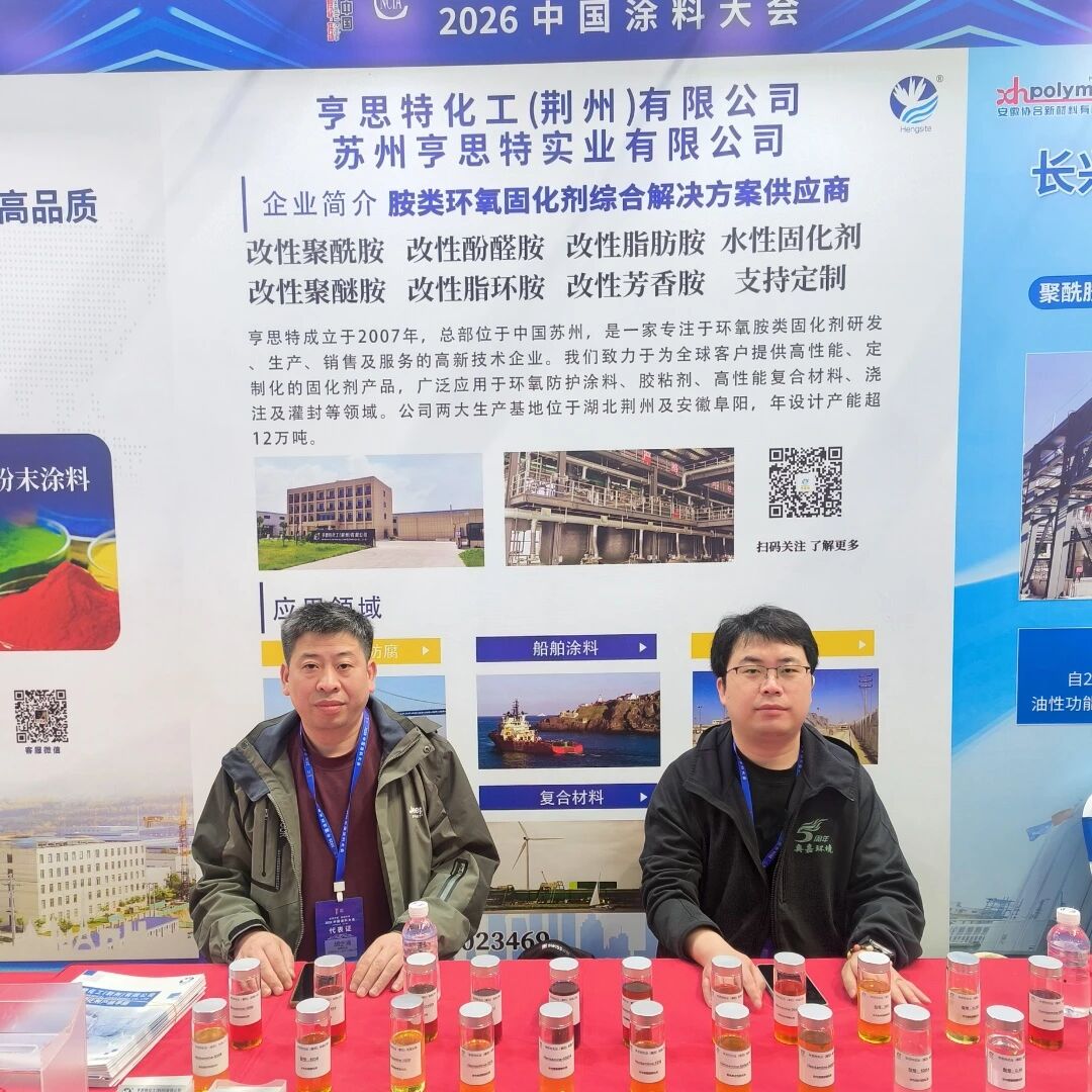 4 月 14—16 日,由中国涂料工业协会主办的 2026 中国涂料大会在安徽明光市体育中心隆重召开。本届大会以 “破局求变,智创未来” 为核心主题,汇聚全球涂料产业链千余名精英代表,共探 “十五五” 开局之年行业高质量发展新方向。亨思特化工作为环氧固化剂领域专业制造商,携核心产品与创新技术重磅亮相,与行业同仁共襄盛举,圆满完成本次参展征程。
